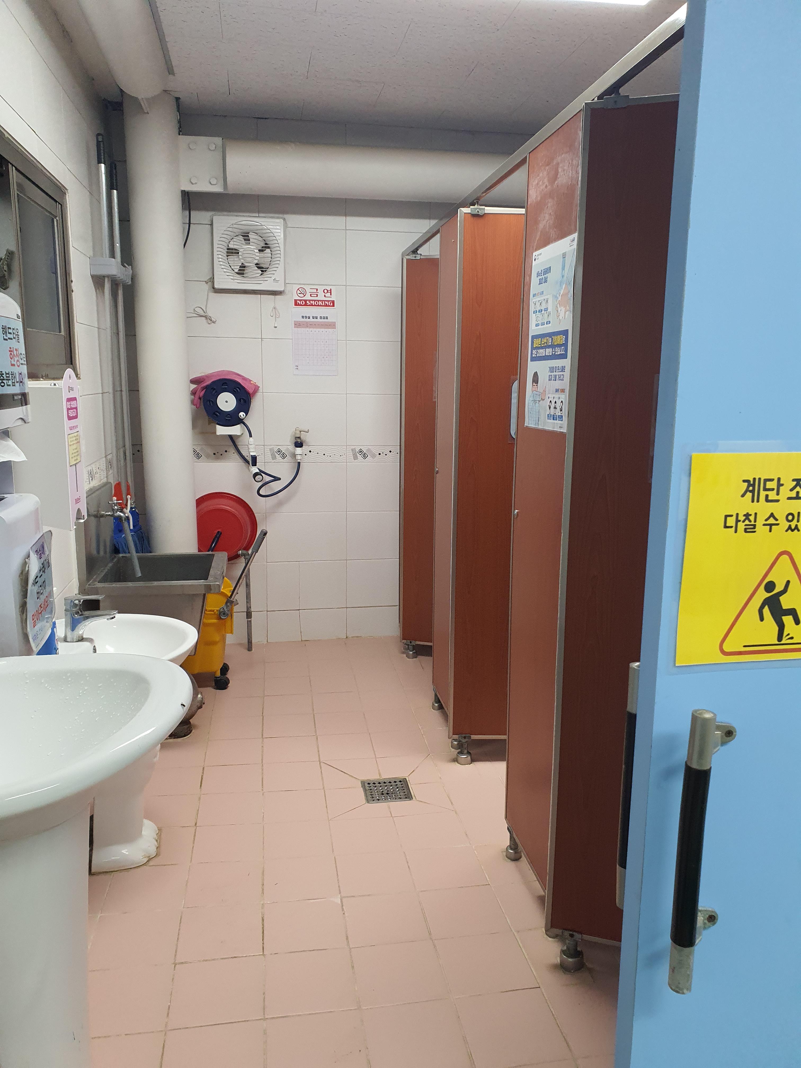 실내에 남, 녀 화장실이 마련되어 있고 사진은 못 찍었지만 작은 수유실, 기저귀갈이대도 있습니다. 화장실 입구에도 곤충들과 물고기를 관찰할 수 있게 조그만 공간이 마련되어 있어요.