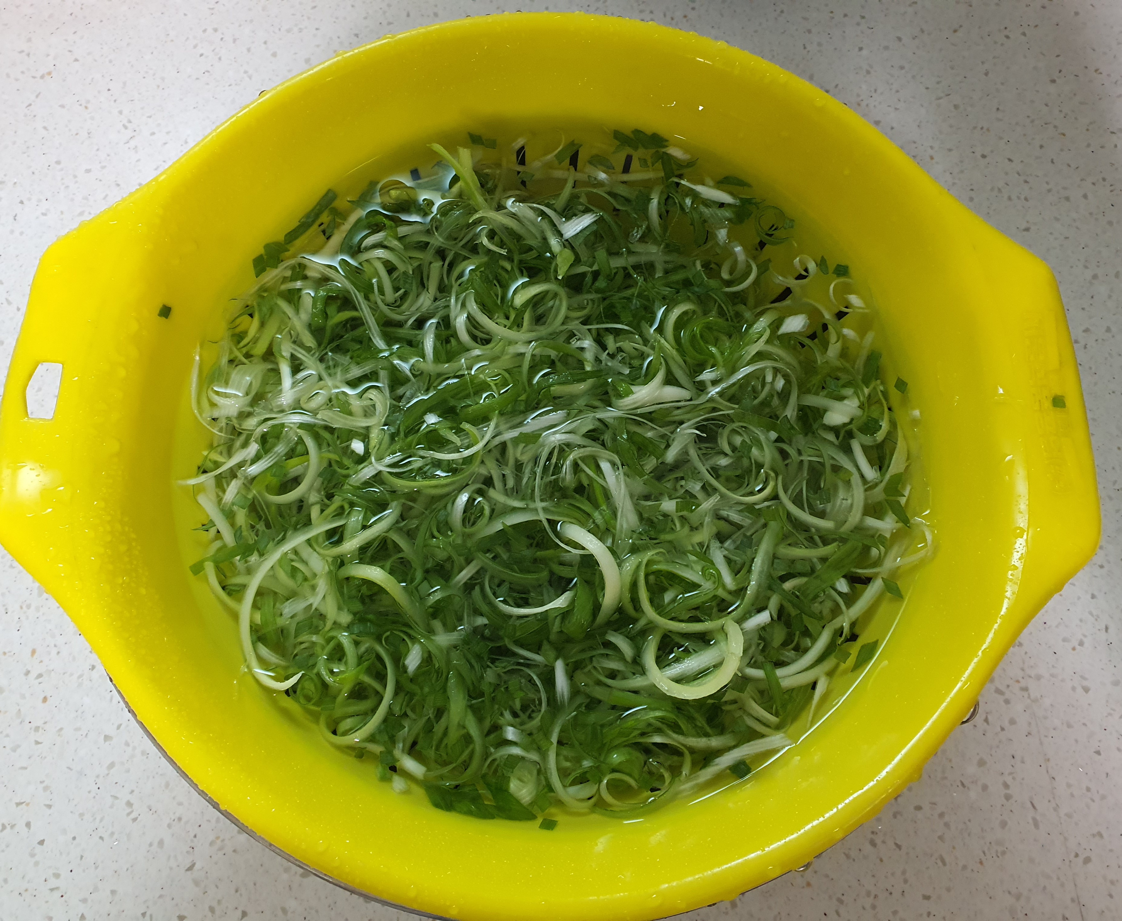 찬물에 미리 담가서 매운 기를 좀 빼주면 좋아요.