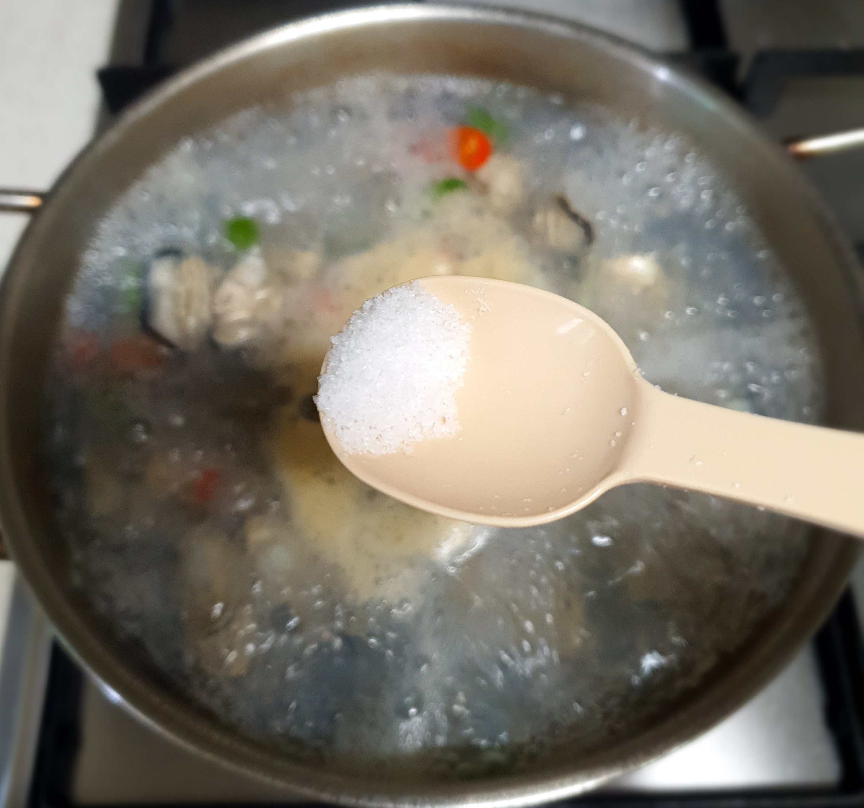 굴국에 간이 되어 있어서 물 조금 추가하고