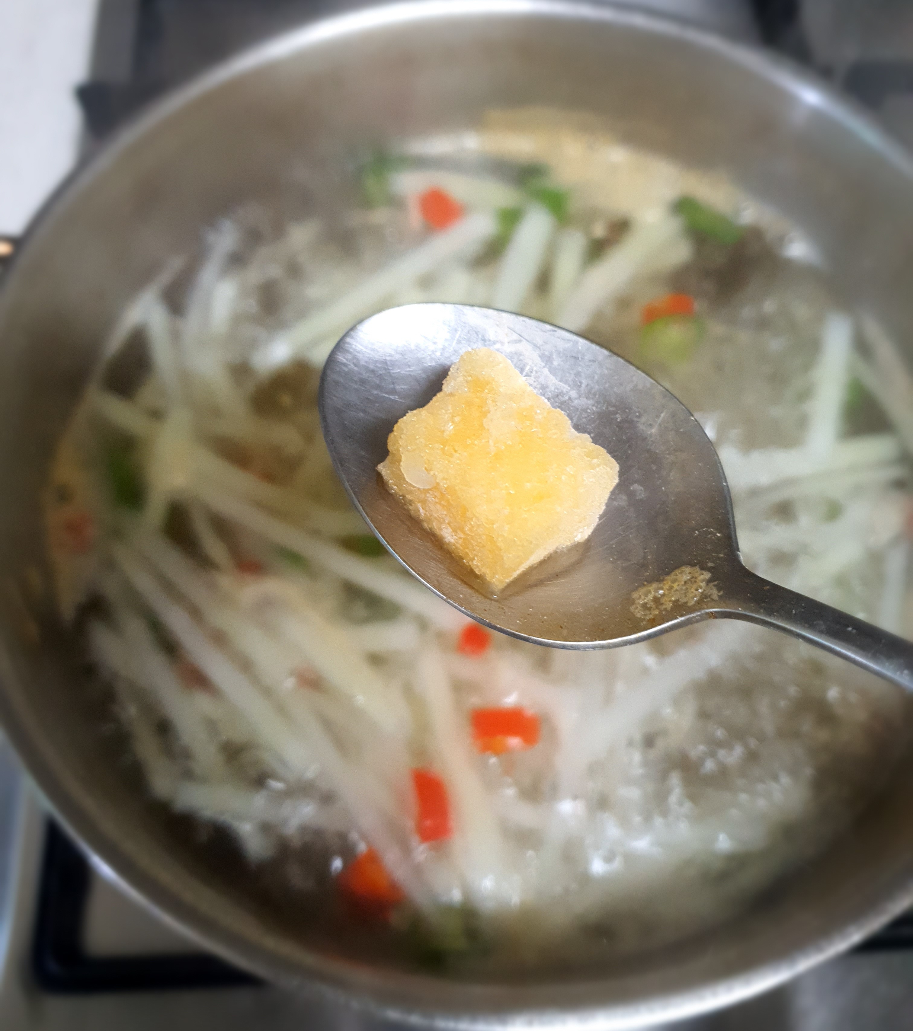 코인 육수 남은 게 있어서 두 알 넣었어요.