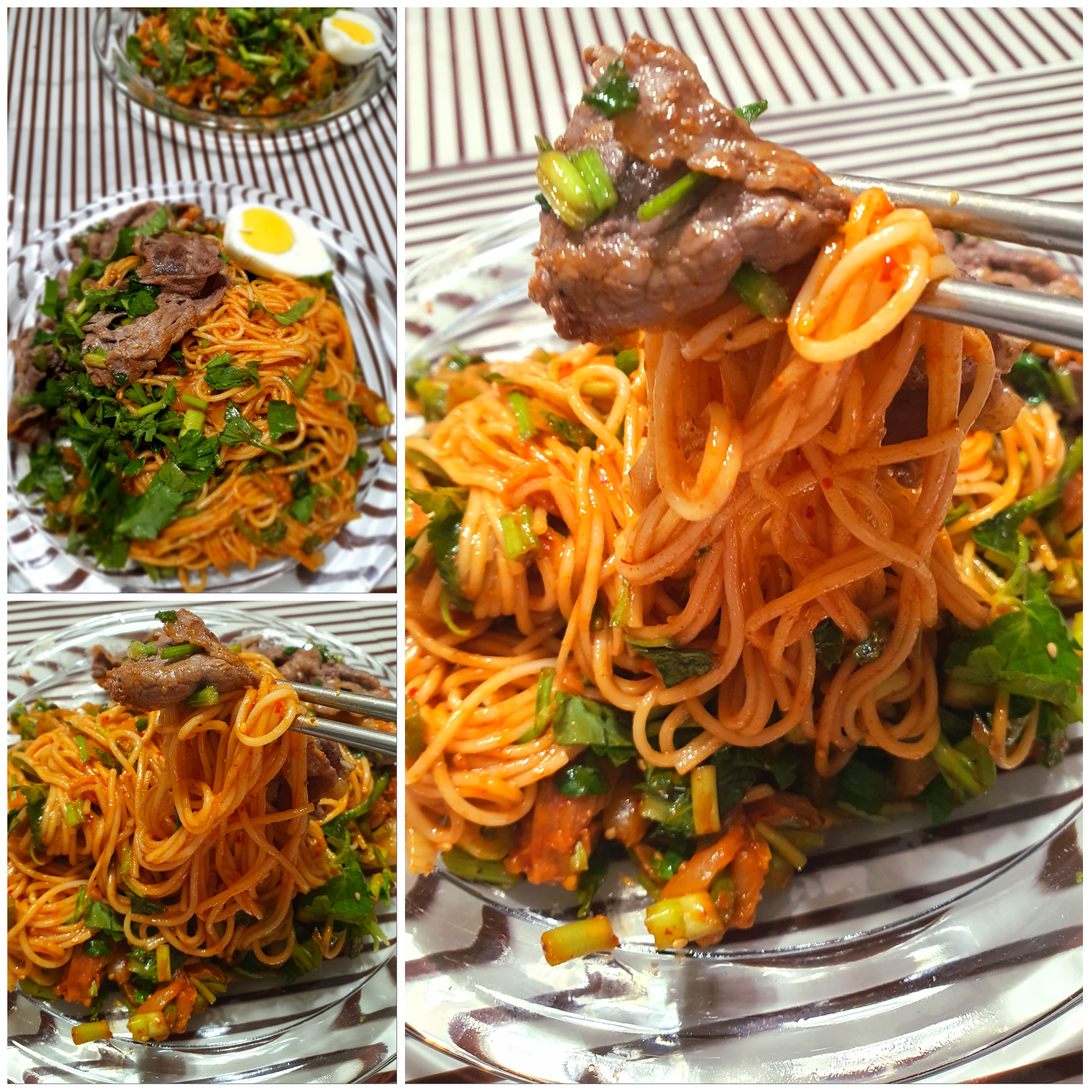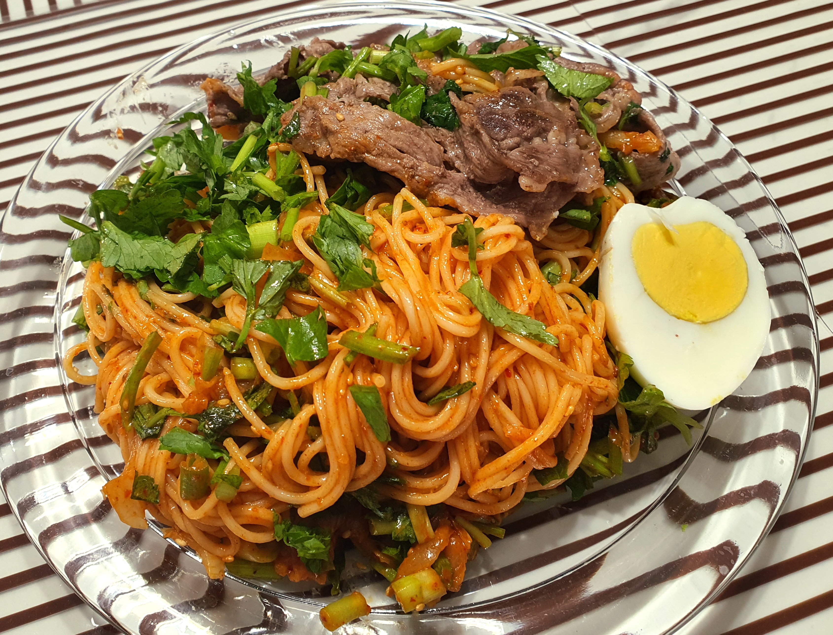 미나리의 향긋함이 느껴지면서 느끼했던 속이 개운해졌어요. 양념김치가 들어가서 씹는 맛도 좋았고, 차돌박이를 곁들이니 아주 든든했습니다. 비빔국수 넣는 재료는 다양하겠지만 향긋한 미나리를 넣어서 드셔보는 것을 추천합니다. 글 읽어주셔서 감사합니다.^^