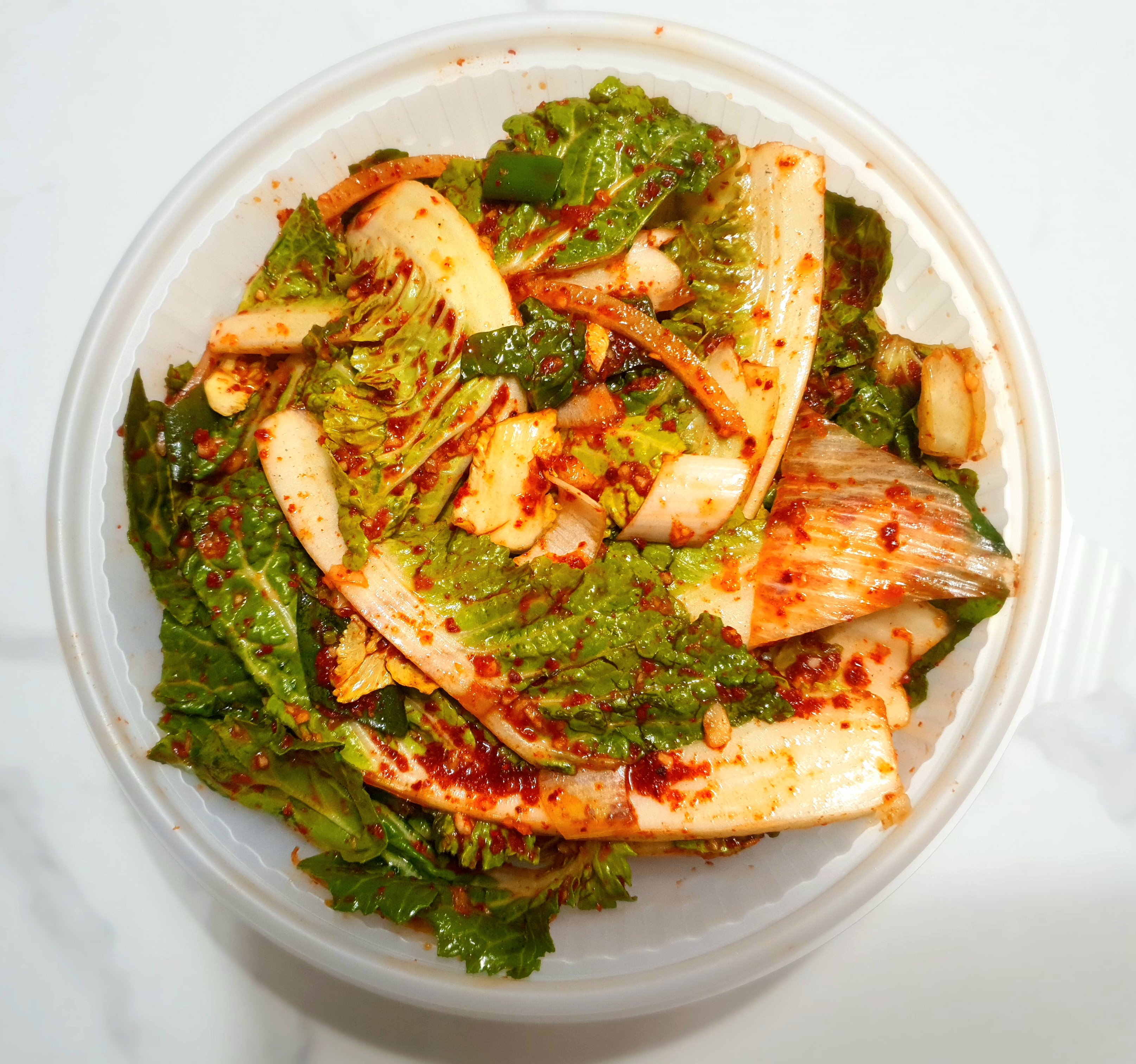 진짜 먹고 싶었던 봄동 겉절이! 얼마 전에 다른 반찬가게에서 이거 사 먹고 너무 달아서 다 버렸는데 여긴 맛있었어요. 일단 봄동이 아주 쌩쌩해서 아삭아삭 식감이 좋았고, 간이 달지 않고 상큼하며 맛있어서 많이 집어 먹었네요.
