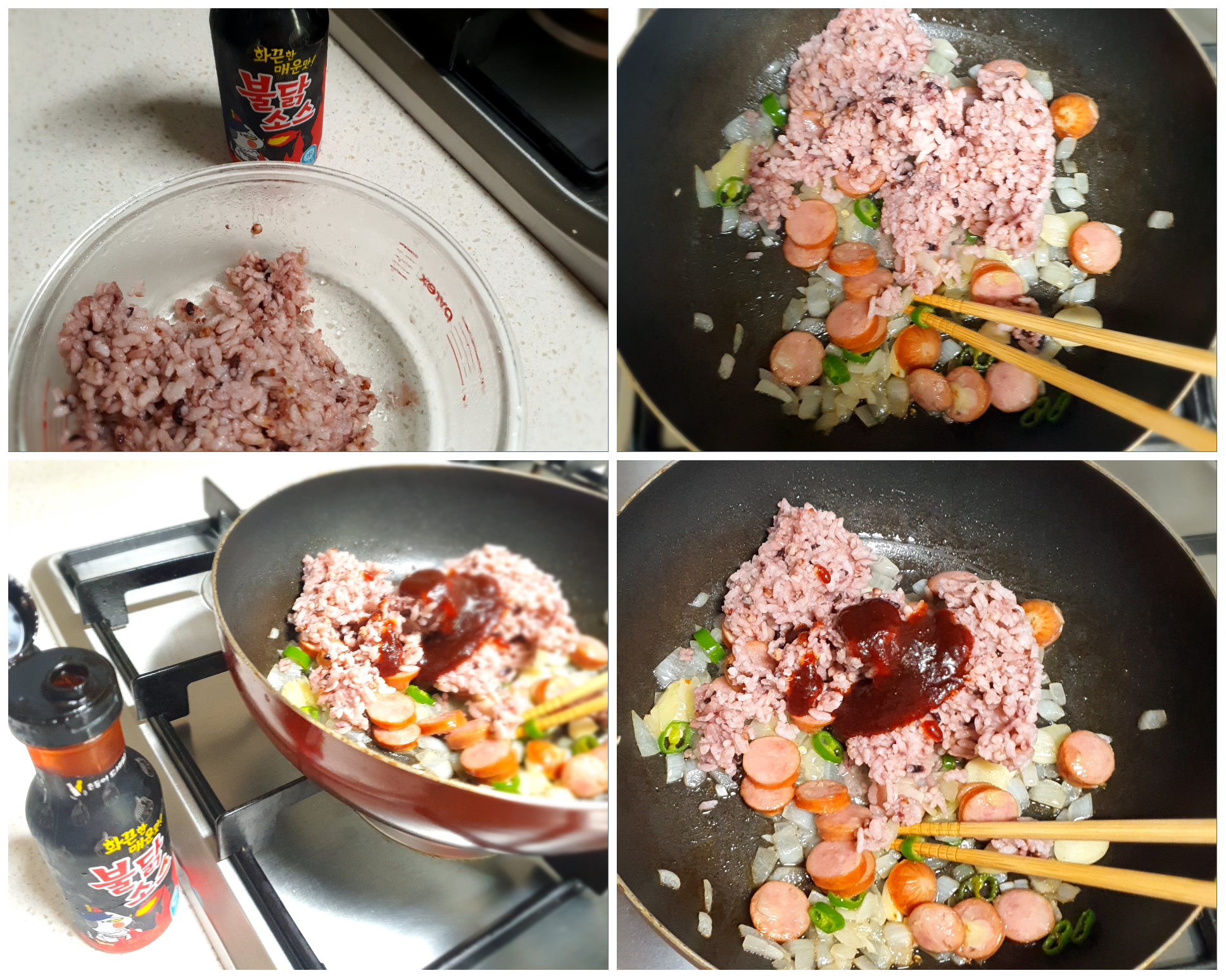 냉장고 파먹기: 불닭소스로 간단하게 만드는 불닭볶음밥