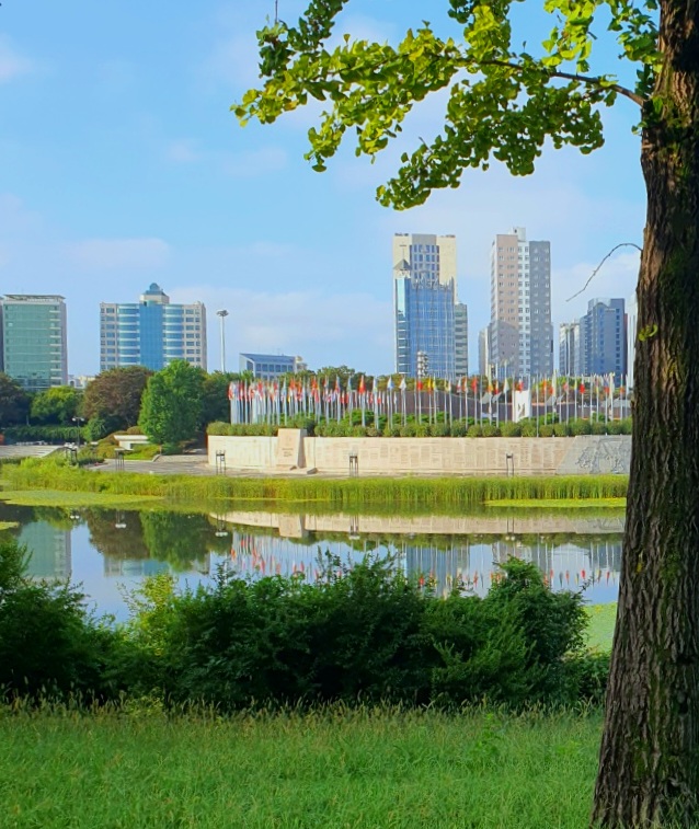 올림픽 공원의 아침 풍경: 아침 걷기 운동으로 건강을 지켜요.
